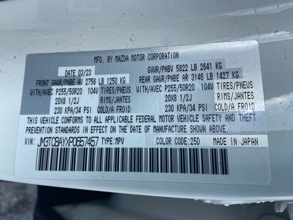 CX-9 Touring Plus, 4D Sport Utility, 2.5L 4-Cylinder, Automatic, AWD, Snowflake White Pearl Mica, Black Leather, 3rd row seats: bench, 4-Wheel Disc Brakes, Air Conditioning, Alloy wheels, AppLink/Apple CarPlay and Android Auto, Dual front impact airbags, Dual front side impact airbags, Electronic Stability Control, Emergency communication system: MAZDA CONNECT, Exterior Parking Camera Rear, Four wheel independent suspension, Fully automatic headlights, Garage door transmitter: HomeLink, Heated 2nd-Row Captain's Chairs, Heated front seats, Heated/Ventilated Front Bucket Seats, Leather Seat Trim, Leather Shift Knob, Leather steering wheel, Pandora Internet Radio Integration, Power Liftgate, Power moonroof, Power passenger seat, Radio: AM/FM Sound System, Rain sensing wipers, Remote keyless entry, Steering wheel mounted audio controls, Traction control, Ventilated front seats. 3157888989. 2023 Mazda CX-9 Touring Plus